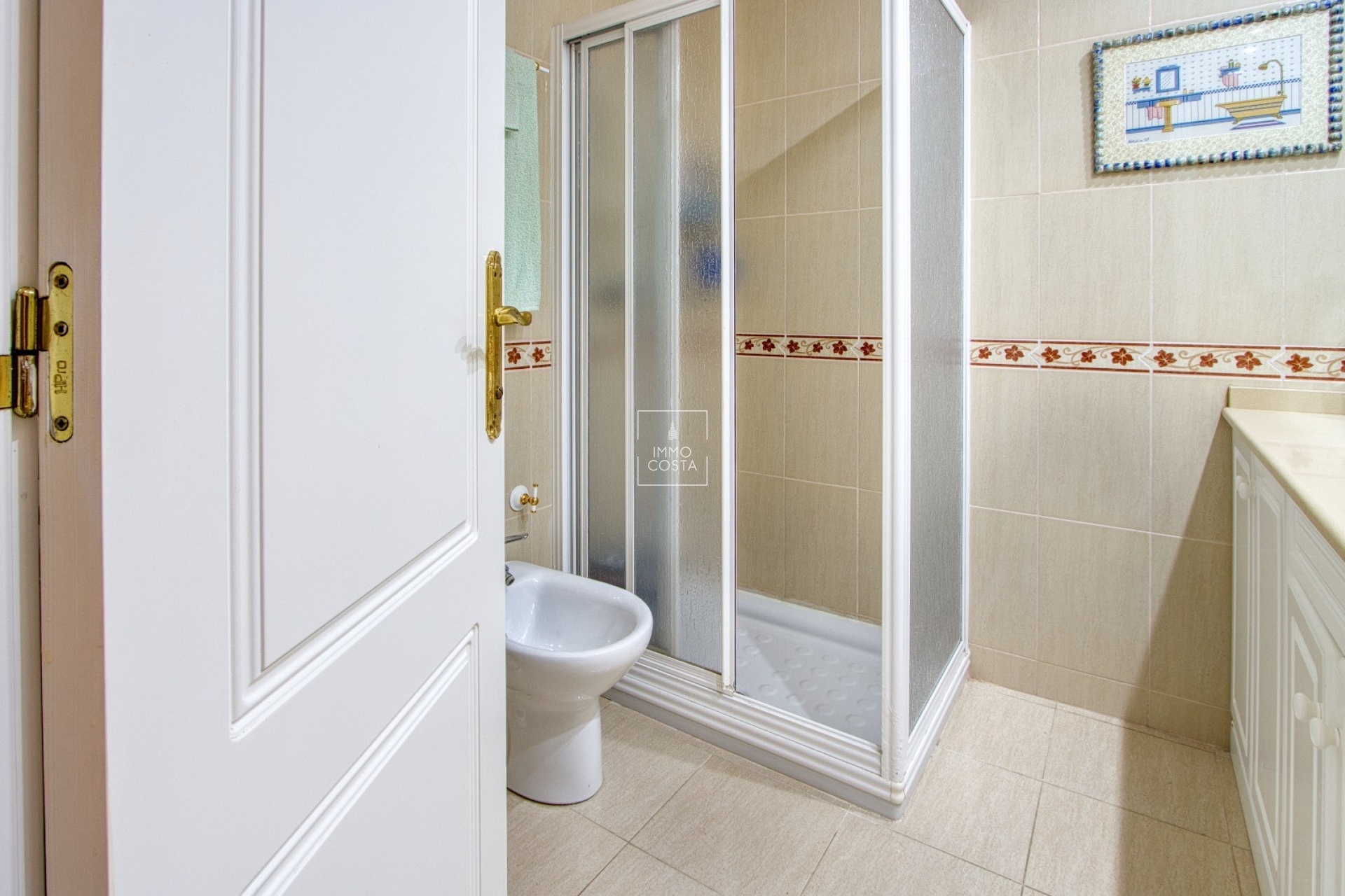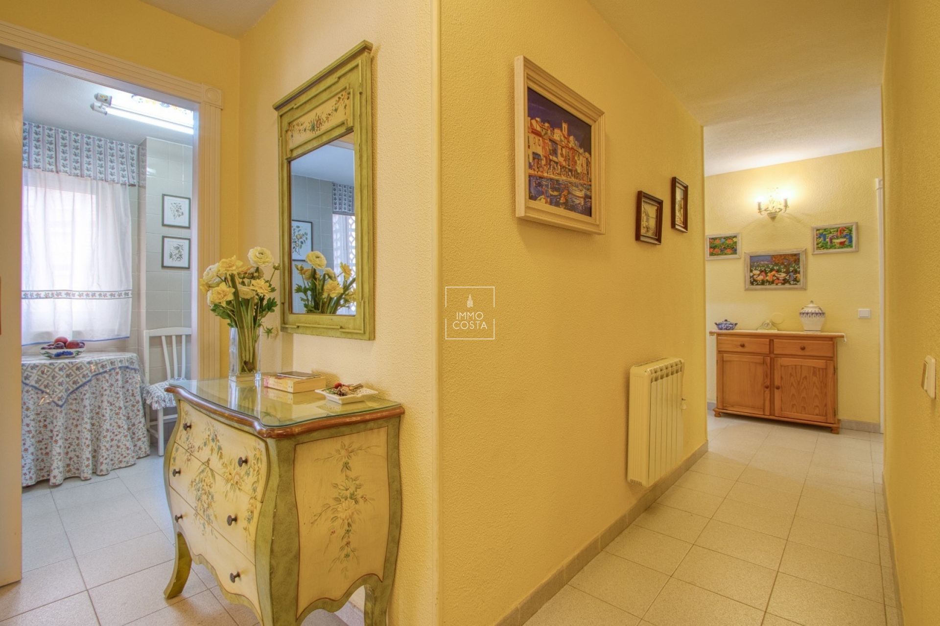 Die separate Küche ist komplett möbliert und ausgestattet und ermöglicht eine funktionale und praktische Nutzung. Darüber hinaus verfügt das Anwesen über eine Eingangshalle, die dem Grundriss einen Hauch von Eleganz verleiht.